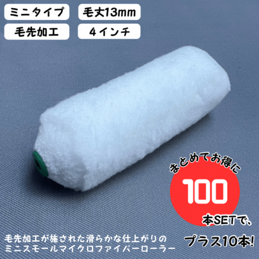 【100本SETで、プラス10本!】【毛先加工タイプ】ミニスモールローラー マイクロファイバー 【4インチ・毛丈13mm】