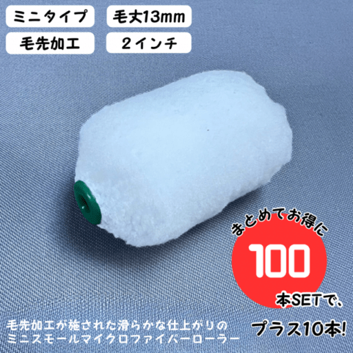 【100本SETで、プラス10本!】【毛先加工タイプ】ミニスモールローラー マイクロファイバー 【2インチ・毛丈13mm】