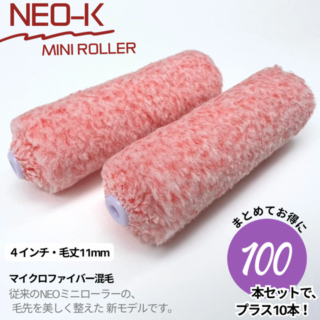 【100本セット】でプラス10本 ★NEO-K★ ミニ スモールマイクロファイバーローラー 4インチ/毛丈11mm 計110本