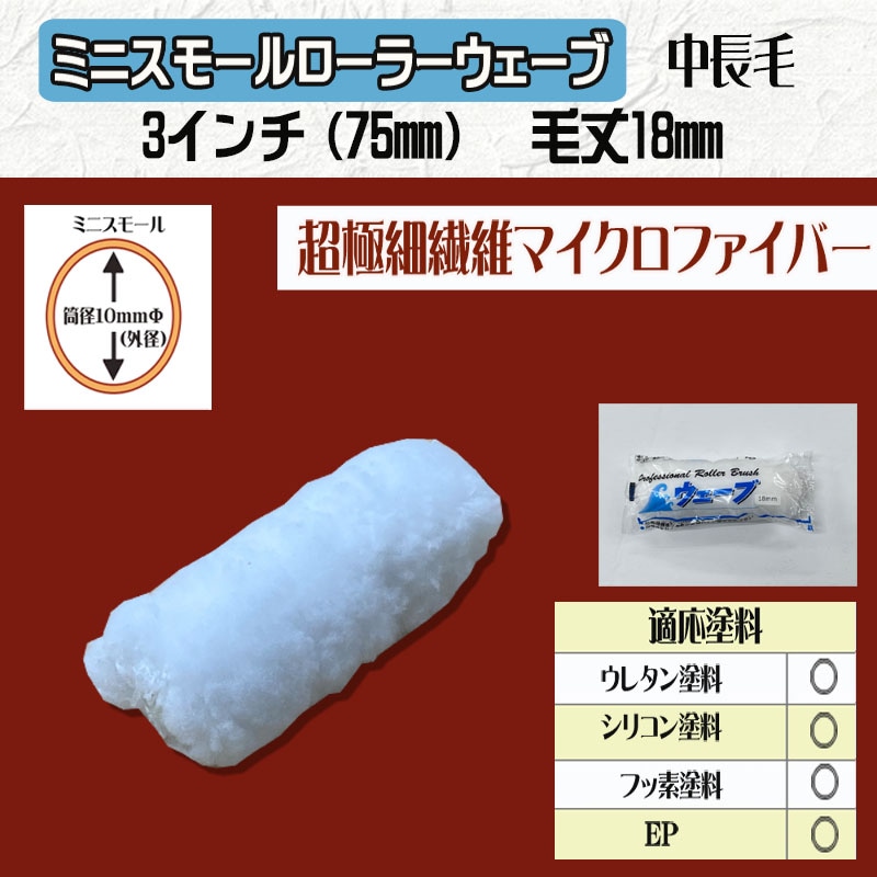 ミニ スモールローラー 【ウェーブ】 3インチ・ 毛丈18mm 2本/10本